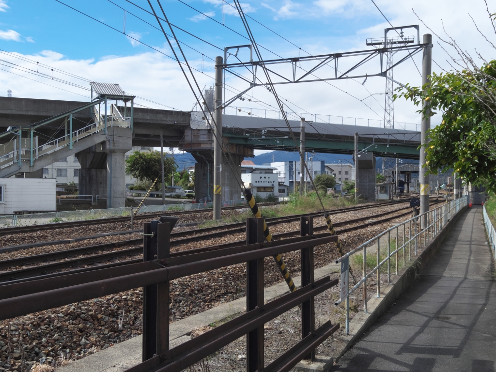 線路を間近に見られる自転車歩行者専用道路があります。私が訪問した時にはEH210が点検中の様子でした。他にも近くの陸橋の上からだと上からの様子を見ることができます。