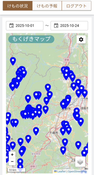 地図上にマッピングされることでおおよその出没傾向が分かるので参考になります。こうやって見てみると長野市西部から小川村にかけての目撃情報が多く感じます。逆に聖山の周辺や犀川沿いの国道19号沿線であまり目撃情報がないのは意外に感じました。