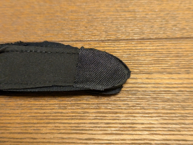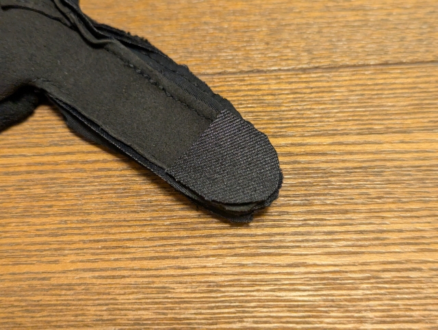 裏返してみるとこんな感じです。色が同じなのでパッと見では補修されているかどうかはほとんど分かりません。手を入れてみるとやはり指先部分には違う素材の布が入っている感じがありますが、許容範囲だと思いました。