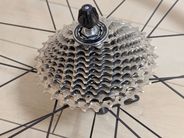 今回のメンテナンスでスプロケットについても交換をしてもらいました。直ちに交換が必要なほど痛んでいたわけではないですが、ホイールもリアディレイラーもチェーンリングも交換になるので、この機会に合わせて交換したものです。