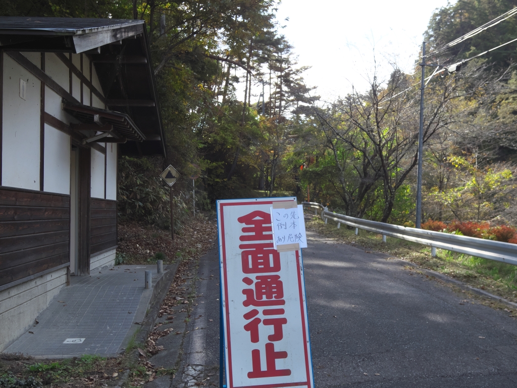 県道の旧道にある差切5号隧道が通行止めになっていました。ちょっと古そうなトンネルで通るのが楽しかったのですが、倒木のため通れないようです。写真左に写っている公衆トイレは利用可能でした。