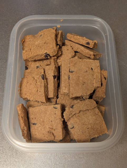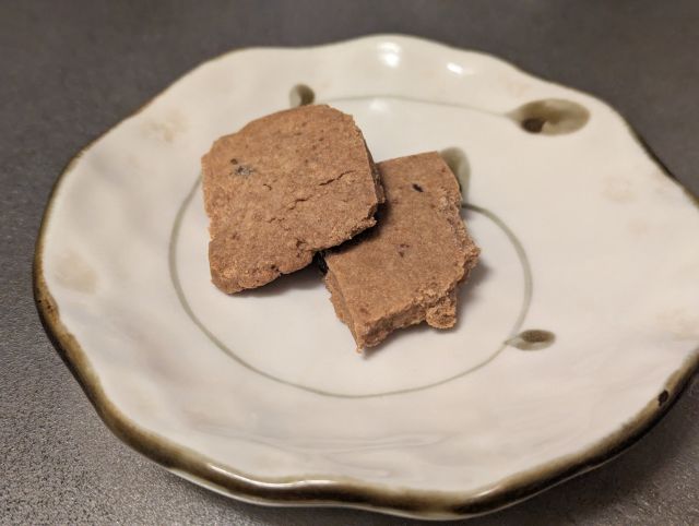 というわけで一口サイズのクッキーが大量に焼けました。中力粉を使ったのでグルテンが強くておせんべいのようになったらどうしようという心配がありましたが、アーモンドプードルが効いたのか意外とほろっとした焼き上がりになりました。