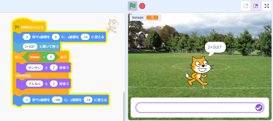 一方でScratchは画像を動かしたり、キャラをしゃべらせたりするようなコードは簡単に作れるので、黒背景に白文字で文字が出るよりはよほど面白いと思いますし、自分で作ったものが動く楽しさが味わえると思います。