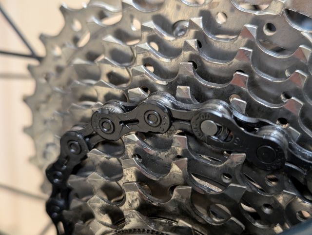 見た目はそんなに変わっていません。昨年KMCのX11-ELというシリーズの金色のチェーンを使っていたのですが、結構気に入ったので今年は黒いチェーンを選択してみました。