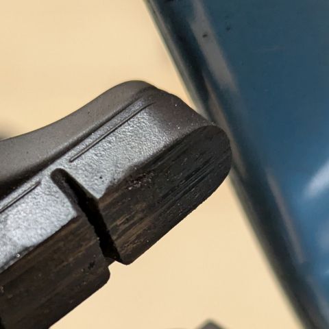 今回も状況としては全く同じで、先日の自転車走行中にブレーキ音に違和感を感じ、帰宅後に点検したところ金属片を見つけたという状況です。